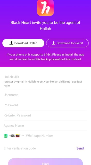 Once you have your Hollah UID from the app, return to this registration page.