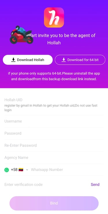 Hollah UID: Enter the UID you obtained from registering via Gmail within the Hollah app.