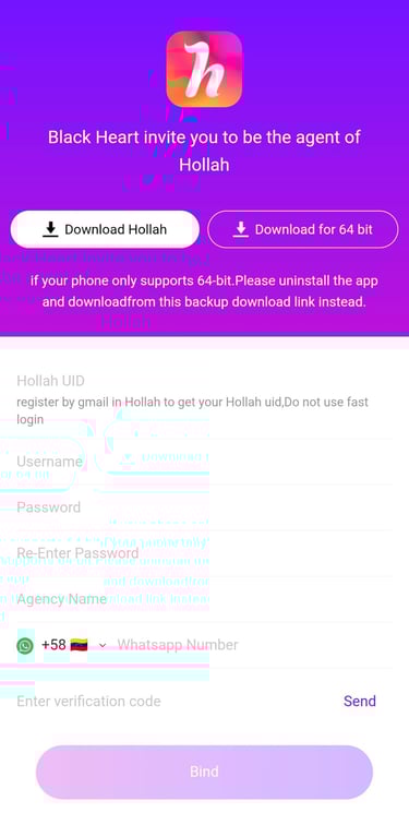 Hollah is a Video Chat app without limits Our anchors are mainly from America,Latam region, Philippine,Vetnam,Russia,Ukraine..0ther special country We serve users or customers from all over the world